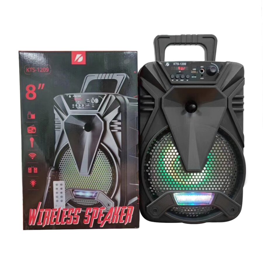 Уредбата за караоке „KTS1209“ е с вграден акумулатор, микрофон, дистанционно и възпроизвежда файлове Мр3 формат от USB флашка или SD карта, BLUETOOTH, РАДИО + СВЕТЛИННИ ЕФЕКТИ.