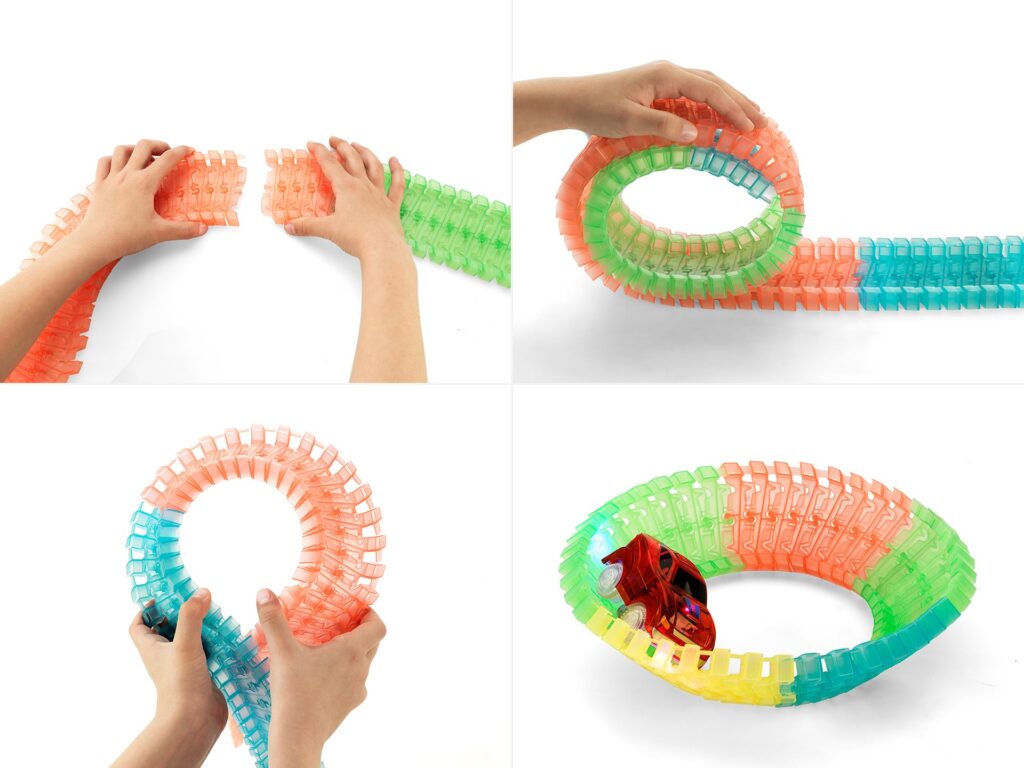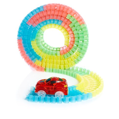 Най-популярната играчка за деца е вече тук! Харесват я момчетата, харесват я и момичетата! Меджик Тракс е най-новата, забавна играчка – състезателна писта, която се променя, огъва във всякаква форма и посока и свети в тъмното. Трасето е в 4 ярки цвята, а колите, с които се състезаваш разполагат с LED светлинa, която създава истинско светлинно шоу в детската стая.