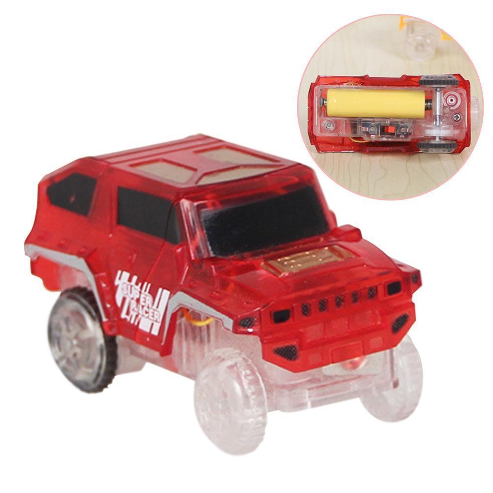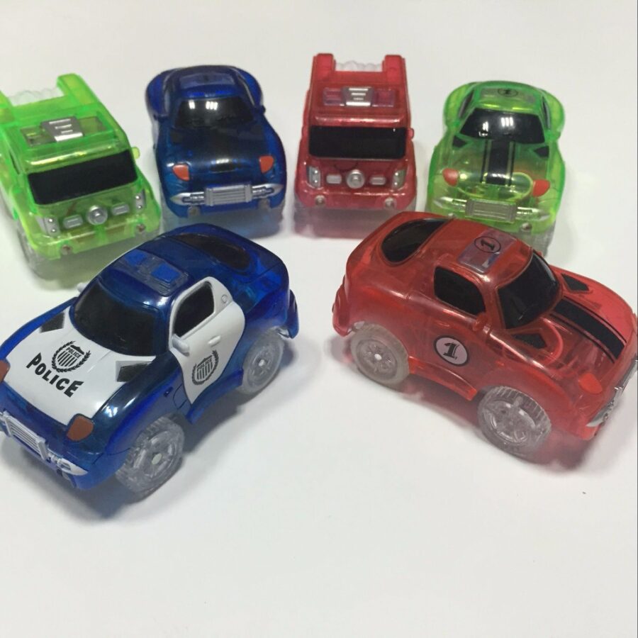 Количката, включена в комплекта, има LED светлина, за да създаде истинско светлинно шоу, докато се движи по меджик пистата.