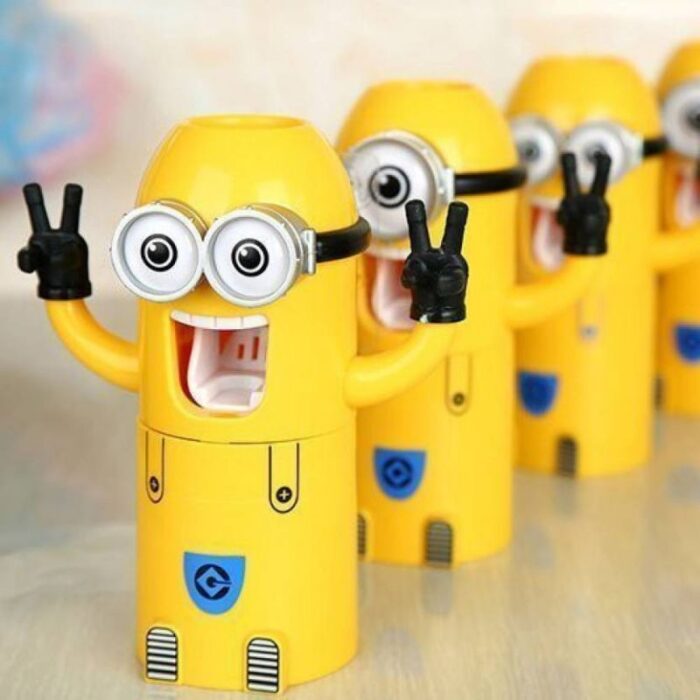 Благодарение на него, банята ви ще е чиста и подредена и няма да има следи от паста за зъби навсякъде. Също така ще спестите и допълнителни средства, защото само с едно натискане вие и вашите деца ще получавате достатъчно паста, без да хабите излишно количество. Върху ръчичките на миньона може да поставите 2 четки за зъби. Той се монтира много лесно на стената, като се залепя с безцветна, водоустойчива лепенка и няма да е нужно да пробивате излишни дупки.
