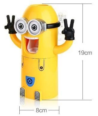 С помощта на този цветен диспенсър ще се справяте без проблем с предизвикателството да накарате малчуганите да мият зъбките си. Те ще бъдат привлечени от любимия си приятел и с удоволствие ще влизат в банята. Миньоните са много популярни напоследък и няма дете, което да не ги харесва и буквално да не полудява по тях. Подарете си решение във вечните преговори с децата за миене на зъбките, като им осигурите този забавен детски диспенсър във формата на любимия им детски герой – миньон.
